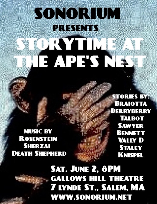 Storytime at the Ape's Nest is weird words and weirder sounds. Bad writing turned inside out into genius, set to odd music by odd musicians. Produced by noted person Chris Braiotta, featuring his own work and that of others as well. Released at odd intervals, just like your dreams.